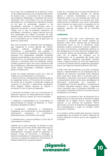 Educación Técnica y Empleo, d) Turismo Sostenible. Igualmente se considera el Plan de Desarrollo de la