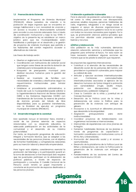 municipal de vivienda (PROMUVI). Incorporar a la Juventud en diferentes procesos