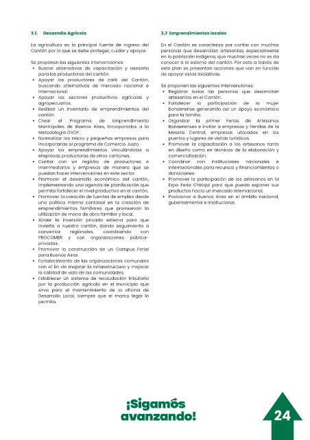 3.1. Desarrollo Agrícola 3.2 Emprendimientos locales